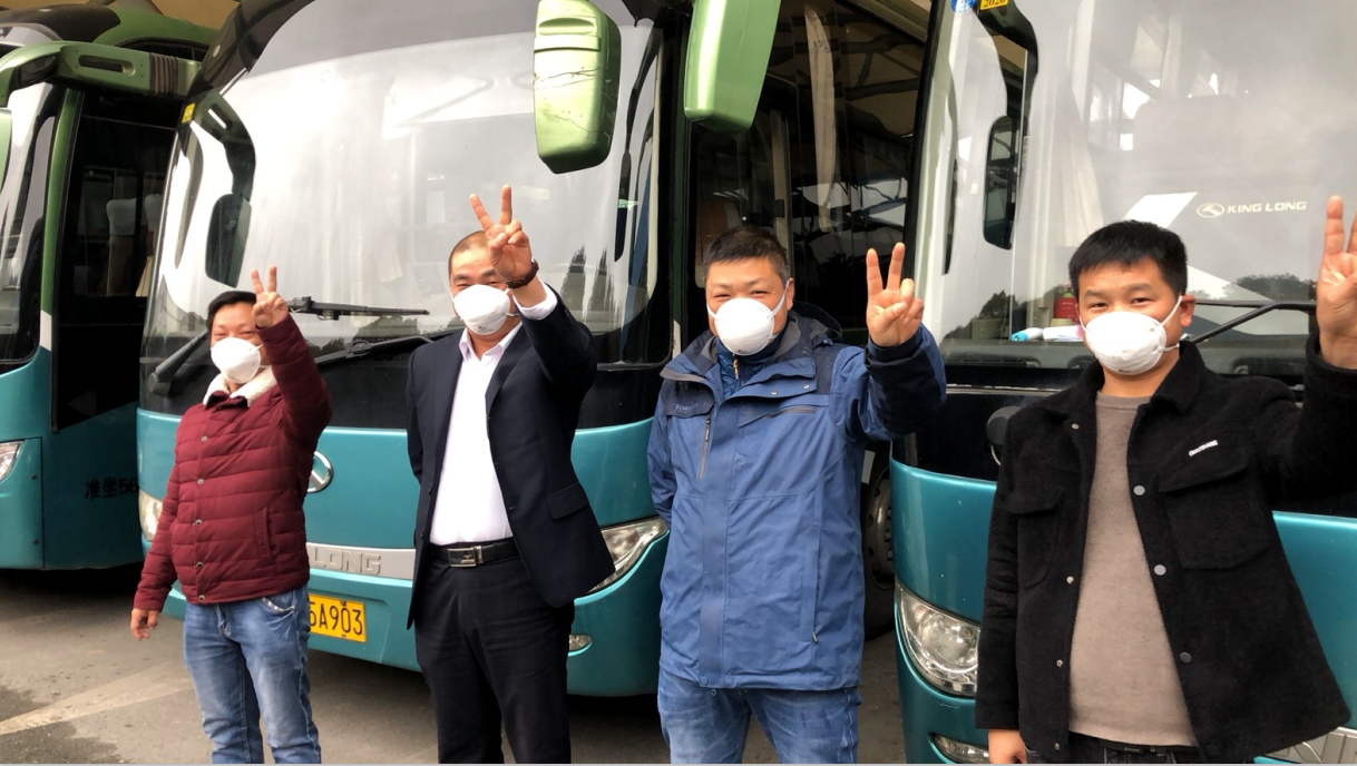 天空烏黑一片,入司18年的客車司機班長羅緒文,同往常一樣早早便起床了,今天是元宵節,他要趕在6點30分前到達指定發車地點,為通勤車消毒,接送因疫情生產仍奮戰在一線的員工。
